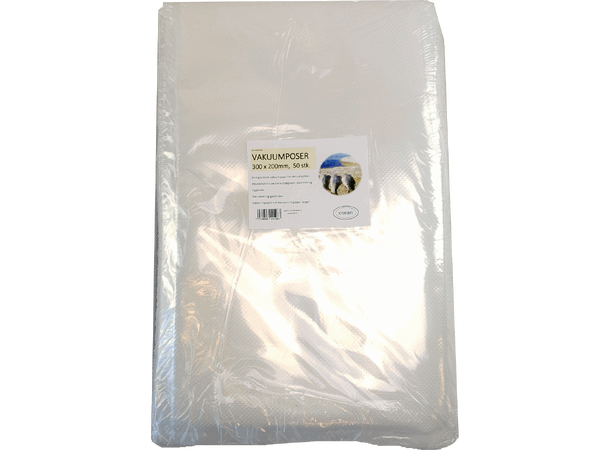 Vakuumpose som passer de fleste vakuumpakkere på markedet. Egnet for vakuumering av pålegg, ost, mindre stykker av kjøtt, fugl og fisk etc.