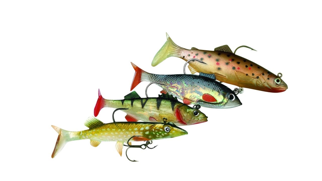 Sortimentet inneholder meget livaktige imitasjoner av vanlige byttefisk i norsk ferskvann.