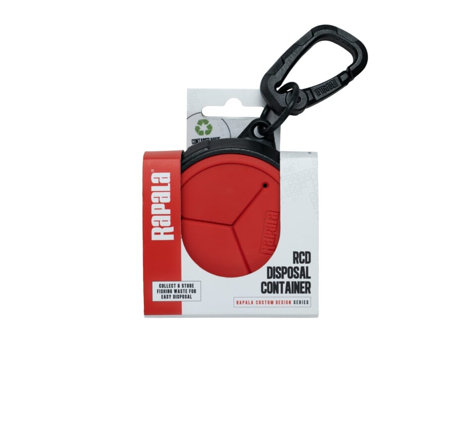 Rapala Disposal Container er en praktisk oppbevaringsbeholder for avfall fra fisket, for eksempel senestumper og brukte søkker m.m. Disse skal som kjent ikke kastes ute i naturen.