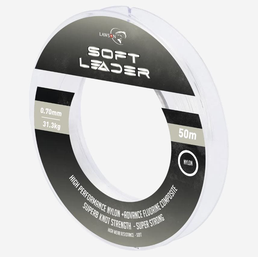 Lawson Soft Leader er et strålende fortomsmateriale til havfiske. Snøret er mykt og gjennomsiktig, og egner seg spesielt godt til knyting av takler. Denne softleaderen er nå forsterket ytterligere med en enda sterkere nylonblanding, som både tåler mer og er enklere å knyte med. Lawson Soft Leader har ekstrem bruddstyrke, og takket være den glatte overflaten, skjærer den også veldig fint gjennom vannet.