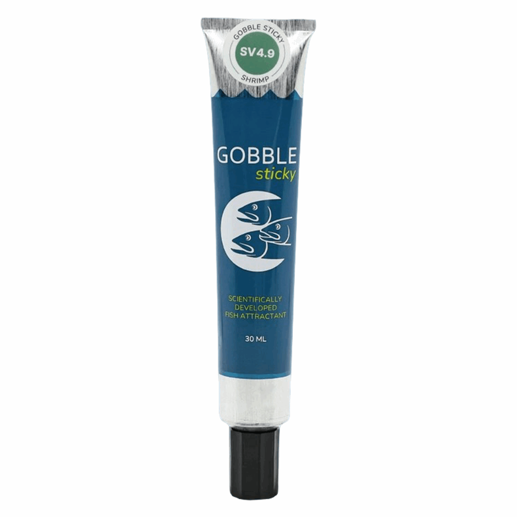 Gobble Sticky er en klebrig krem som kan brukes på alle typer sluker, pilker, wobblere og jigger. Den sitter godt på overflater som metall, plast og gummi. Kremen holder fra 10-30 kast, og opptil en time og ofte lengre på agn som fiskes statisk. Gobble Sticky tilfører lukt og smak som stimulerer fisken til å nappe, uten at den spytter kunstagnet ut igjen. Kan også brukes til å marinere naturlige agn og gummishader før fisk. Gobble Sticky er utviklet og produsert i Norge, av 100 prosent biologisk nedbrytbart materiale.