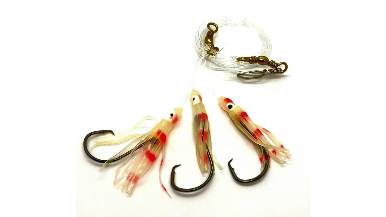 Oppheng med selvlysende blekksprut for agnfiske etter sei, torsk, hyse mm.