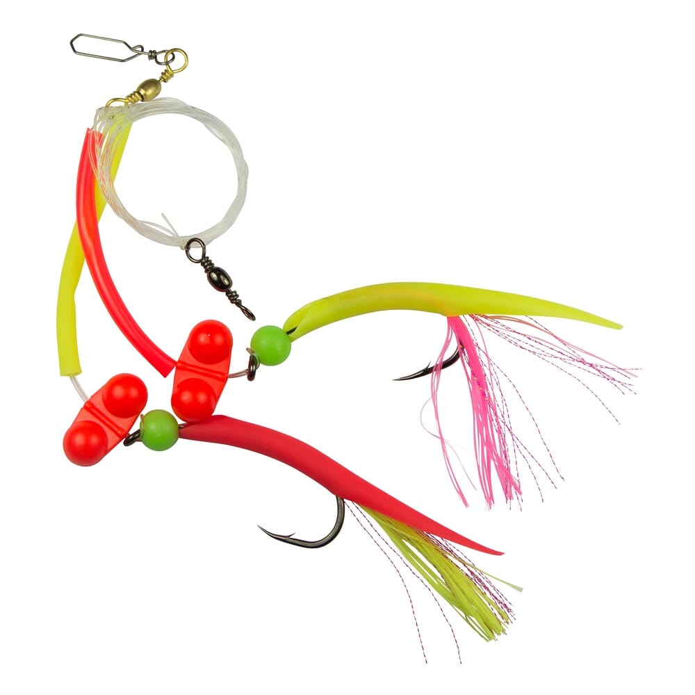 Monteres på fiskeharpe eller stang med søkke eller pilk i enden. 2 kroker.