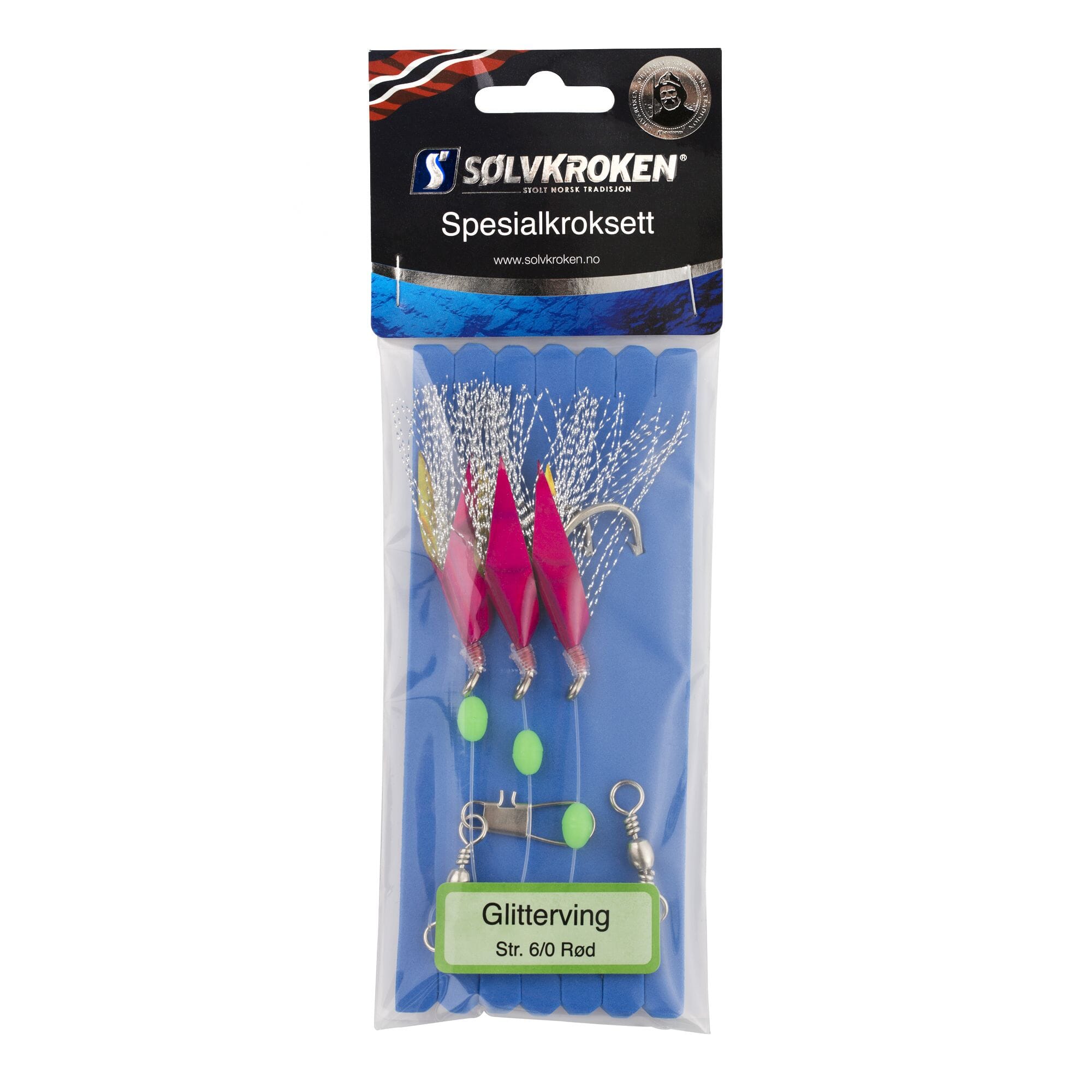 Sølvkroken Spesialkroksett Glitterving rød 6/0