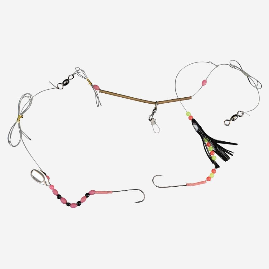 Takkel med singelslep, glidebom og en opphenger. Krokstørrelse 2/O. Takkel for litt større flyndrer, hyse, hvitting mm. Egnes med fiskestrimler, reker, blåskjell eller fjære-/børstemark, og fiskes fra drivende båt.