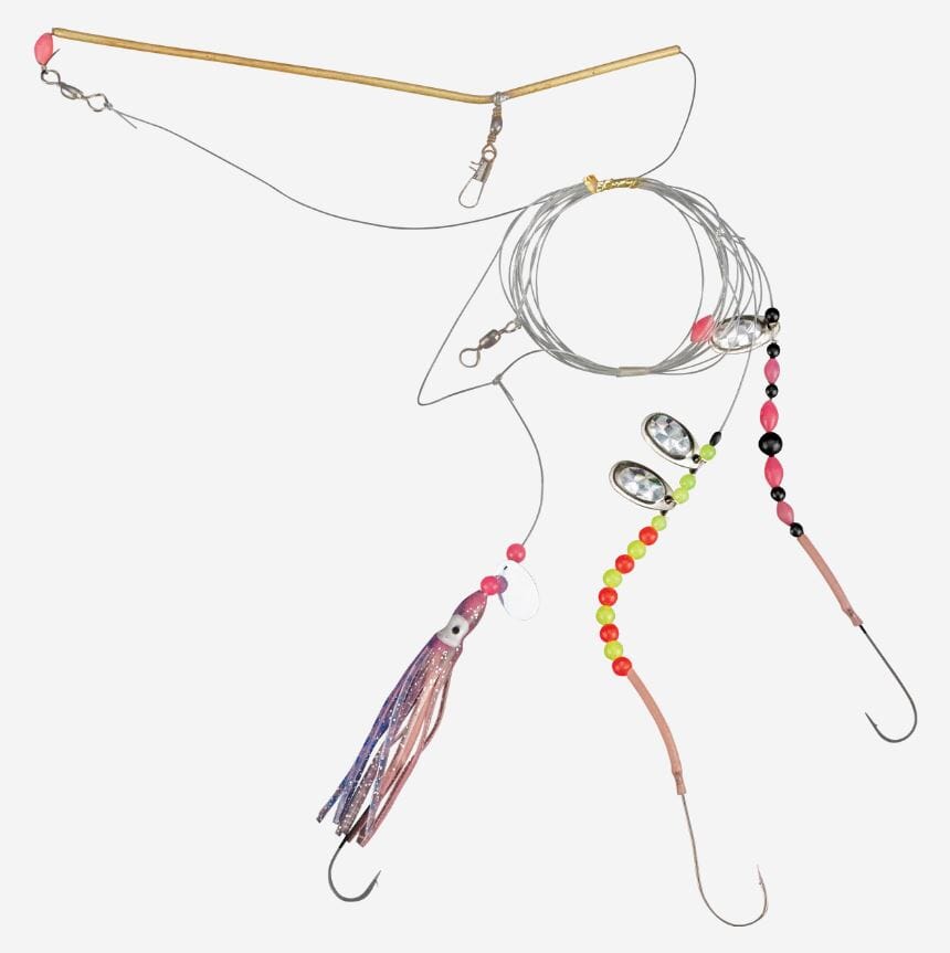 Glidende takkel med langt tokroksslep og en opphenger, rigget med 4/O-kroker. Fortommer utstyrt med fargerike perler, blekksprut og spinnerblader. Et godt allroundtakkel til litt større fisk på grunnere vann.