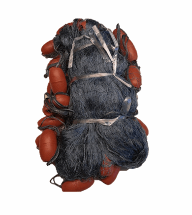 Et 27 meter langt makrellgarn med 37mm masker. Garnet er montert med korkline nr. 4/10 og blyline nr 1,5. Felling på flettet ulstronsnøre.