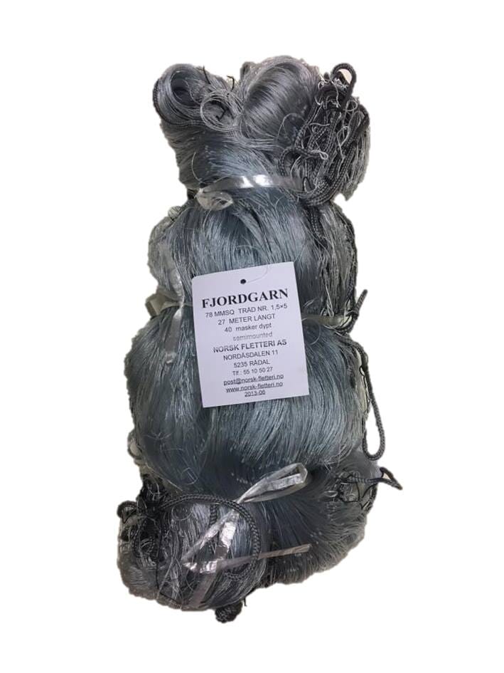 Monter fjordgarnet selv! Et delvis montert fjordgarn med ferdig montert følgeline rundt. Det er bare å feste kork og blyline. Bruk gjerne kork og bly fra gamle utslitte garn.