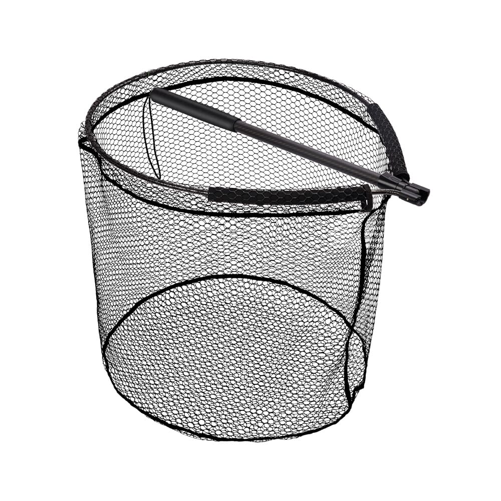 Den ovale nettramma (60 x 50 cm) er produsert i en karbonmiks som sparer gram på fisketuren. Nettdybde på 50 cm passer perfekt for sjøørret, ørret, abbor og annen mellomstor rovfisk. Det todelte gumminettet har flat bunn, det gir god støtte under håving og skåner fisken; ideelt for C&R-fiske.