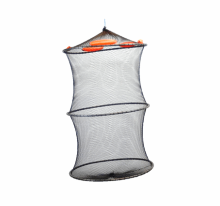 Sammenleggbar fiskemerd av 25mm nylondu/10mm knuteløs duk med 5 stk flyteelementer.